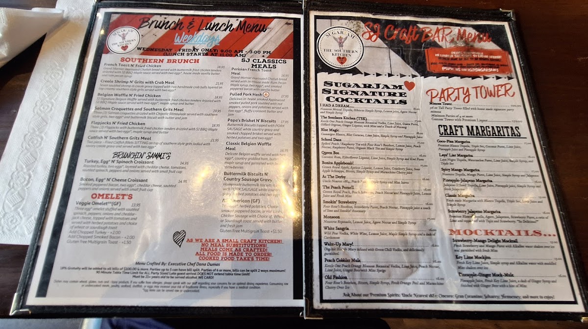Customer reviews echo the delight of dining at SugarJam. For instance, Mrs. Burton raves about her meal being the highlight of her weekend, while A Wells delights in the friendly service and impressive mimosa selection. Breanna Thompson shares a little disappointment but notes the shrimp and grits as being tasty and plentiful, exemplifying the restaurant's commitment to generous portions and flavor. Katira “ClassyDame” Rogers enthusiastically declares it the best Southern cuisine she’s tasted in Arizona, thanks in part to the fantastic service provided by the bartender Rusty and the lively entertainment from the DJ.